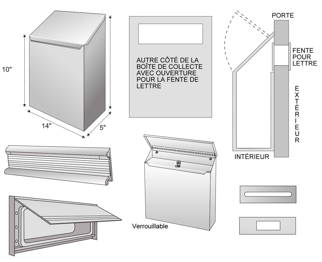 - une fente de lettre en aluminium anodisé a une plaque arrière ou un capot incliné.