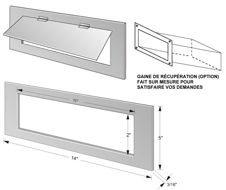 - cadre extérieur et intérieur 14 "x 5" fabriqué à partir d'une plaque d'aluminium 3/16" brossée et laquée claire.